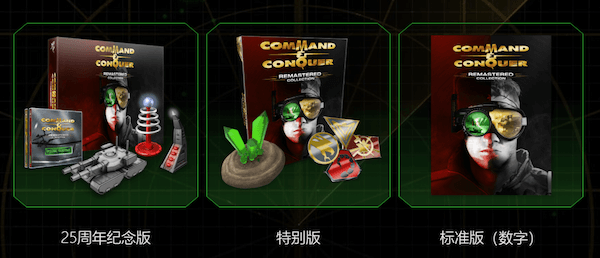 《命令与征服:重置版合集》共有三个版本,数字标准版、特别版及25周年纪念版,后两者为实体版,售价分别为59.99美元和149.99美元。